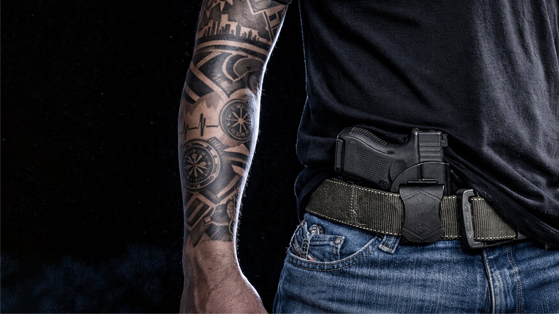 - Offenes oder verdecktes Holster aus Kydex oder anderem synthetischen Material (Kein Leder)